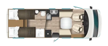 Priviți unicul Itineo JC 740, o casă pe roți complet integrată! Acest model garantează un nivel maxim de intimitate și confort datorită ușii sale despărțitoare dublă, garajului spațios (înălțime: 125 cm) și dimensiunilor mari a patului de o persoană (2 x 80 x 197 cm). Dispuneți de un pat dublu suplimentar extensibil (197 x 217 cm) pentru un lux suprem, precum și de spațiul ei de locuit funcțional cu un pat suplimentar opțional rabatabil (90 x 200 cm). Contactați-ne pentru mai multe informații despre această autorulotă de excepție – Itineo JC 740!